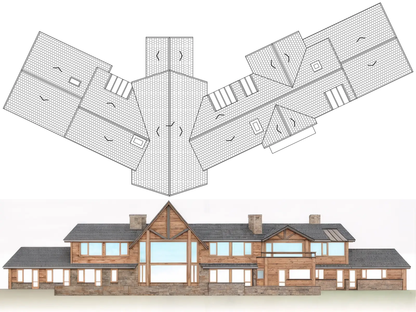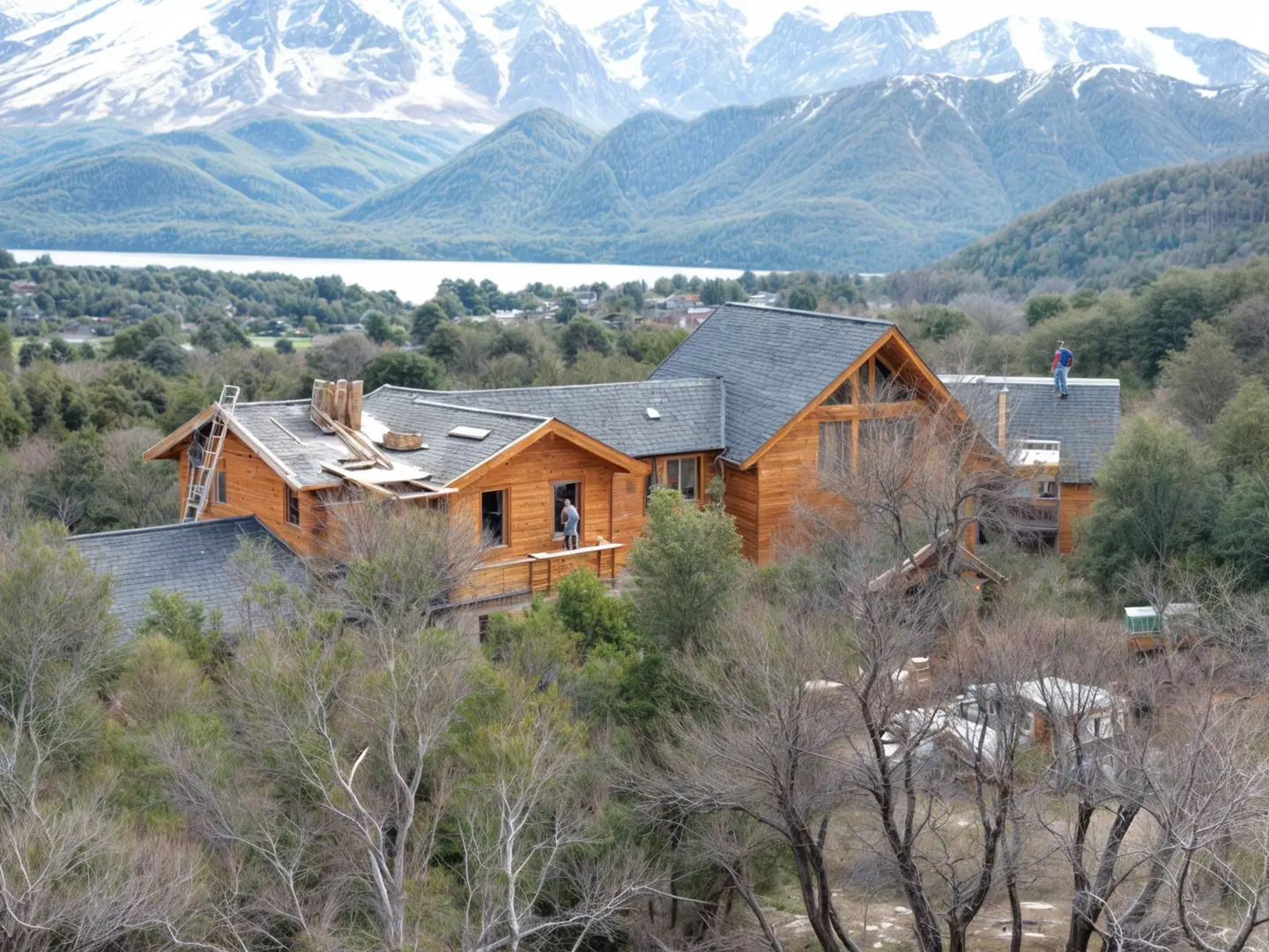 Madera y piedra aportan calidez y armonía con el paisaje dándole un carácter tradicional y acogedor. Grandes ventanas enmarcan vistas panorámicas al lago y las montañas.